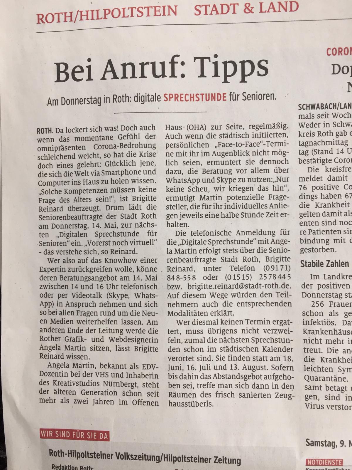 Veranstaltung der Stadt Roth Digitale Sprechstunde Ich freue mich über die neuen Wege für euch da zu sein. Sichert euch Euren kostenfreien Termin.